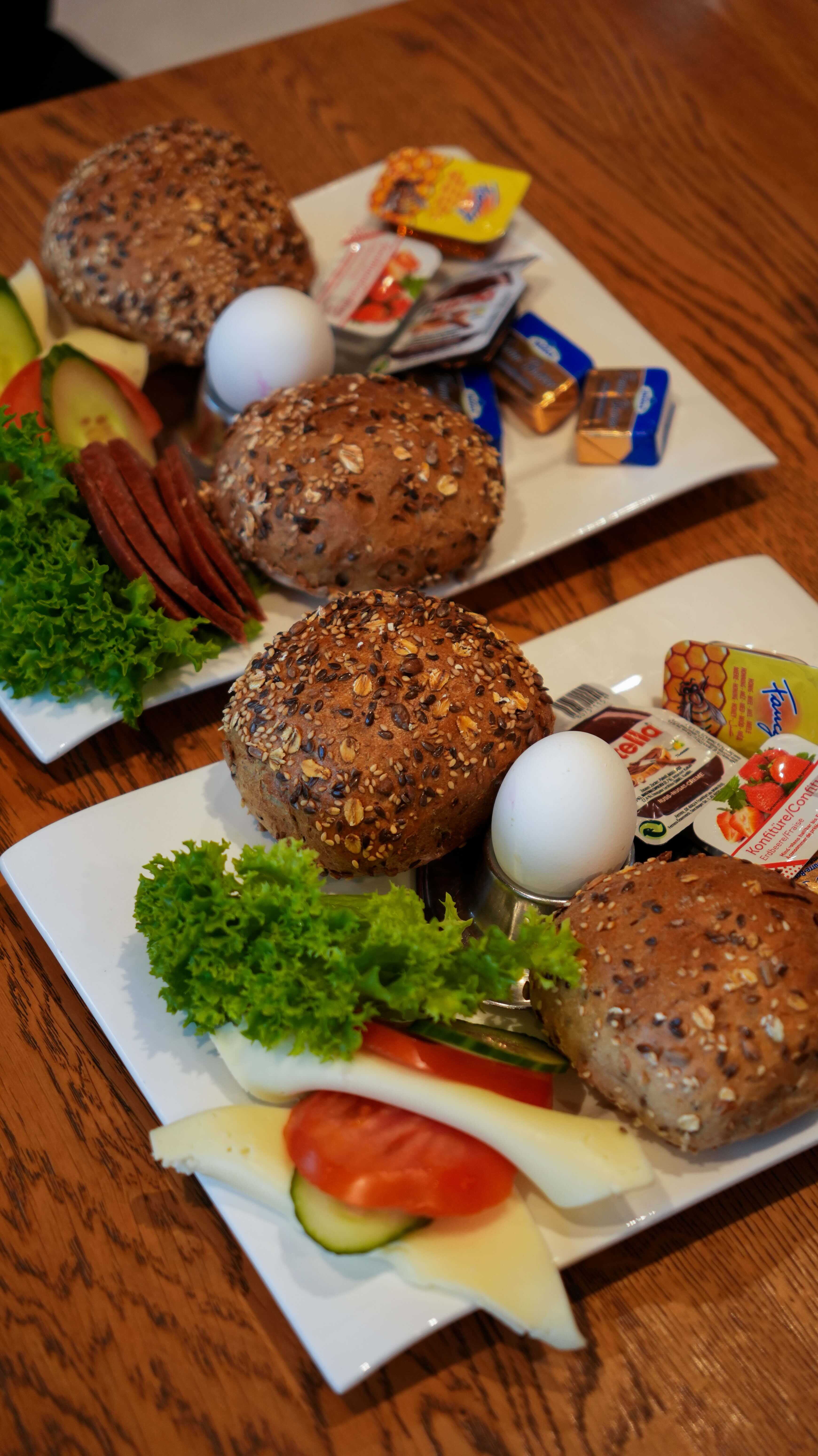Für den perfekten Start in den Tag bieten wir Ihnen verschiedene Frühstücksvarianten – von herzhaft bis süß. Ob mit frischem Aufschnitt, Käse, Ei, knackigem Gemüse oder süßen Aufstrichen: Bei uns ist für jeden Geschmack etwas dabei. Genießen Sie Ihr Frühstück in entspannter Atmosphäre und starten Sie gestärkt in den Tag.